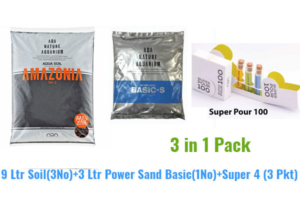 ADA Amazonia Combo Pack Contains Amazonia Soil, Power Sand and Super 4 3in1 Kit suitable upto 3.5ft Tank Kit Contains ADA Amazonia V2.0 – 9Ltr – 3 Nos ADA Power Sand Basic 2 Ltr – 1 No ADA Power Sand Basic 1 Ltr – 1 No ADA Super 4 – 3 Pkts Product Video https://youtu.be/jC70o0ycdaE Other ranges are Combo Pack 2 Combo Pack 1