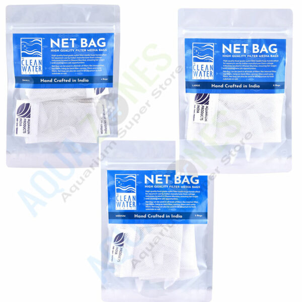 Filter Media Bag Suitable for all media except seachem purigen Available in 3 Sizes S – 15 cm x 10 cm M – 25cm x 15cm L – 25cm x 25cm S Pack contains 4 Nos of S Size Media Bags M Pack contains 3 Nos of M Size Media Bags L Pack contains 2 Nos of L size Media Bags