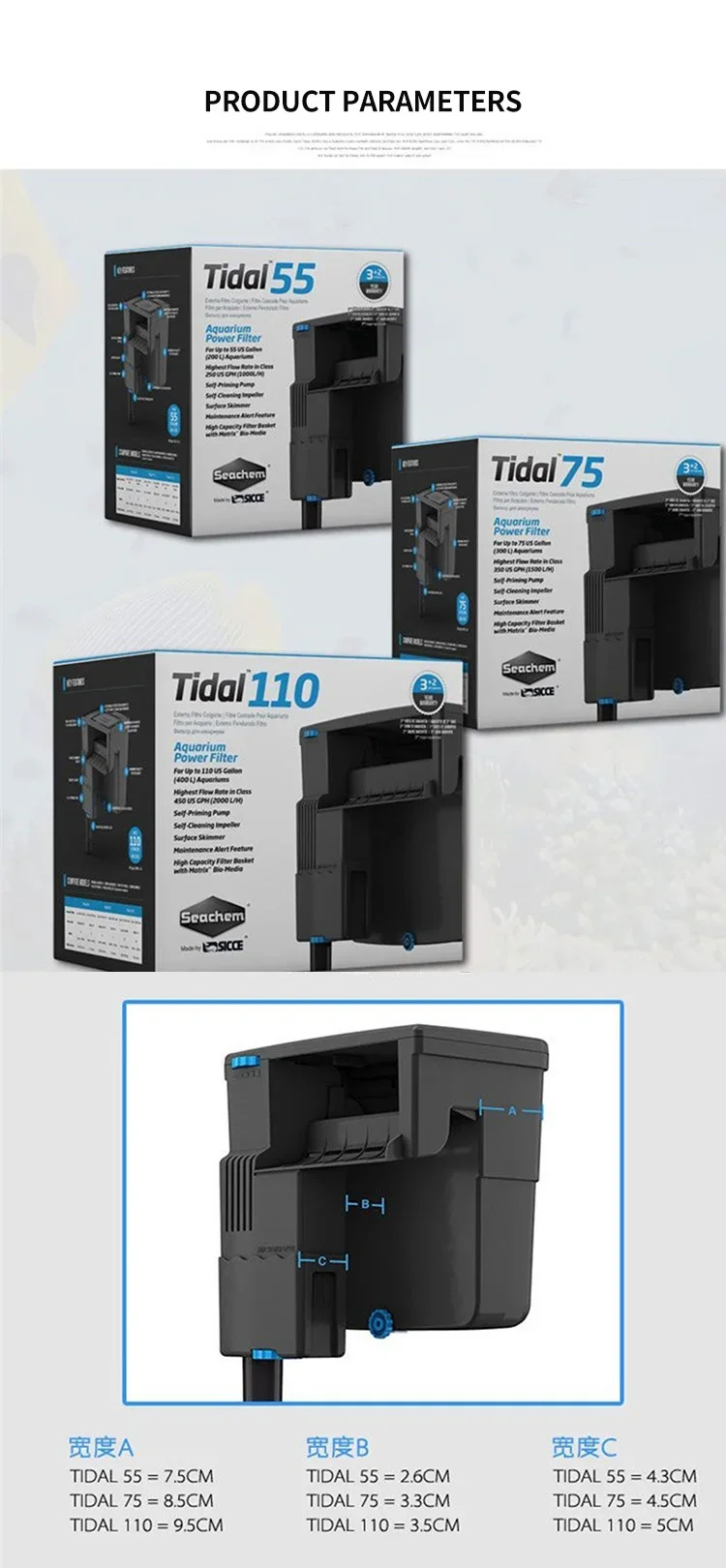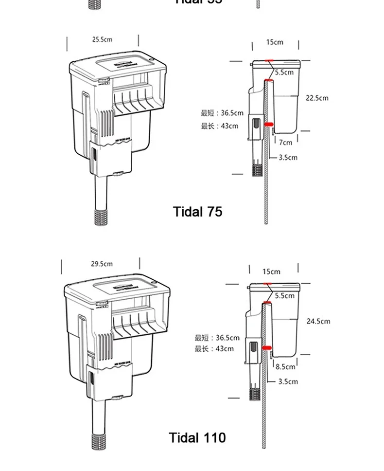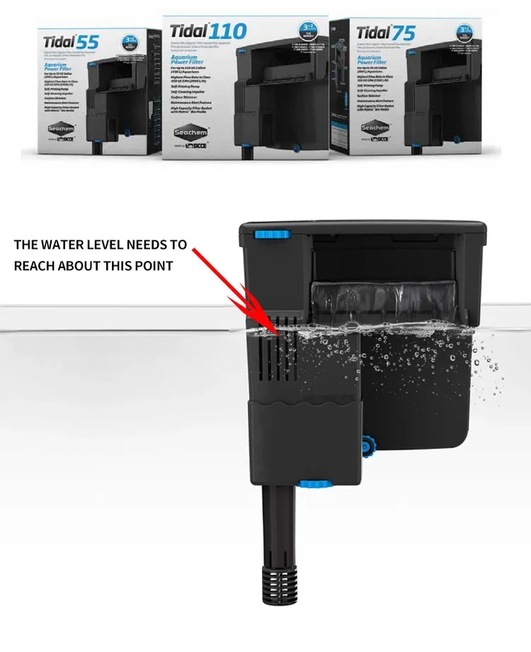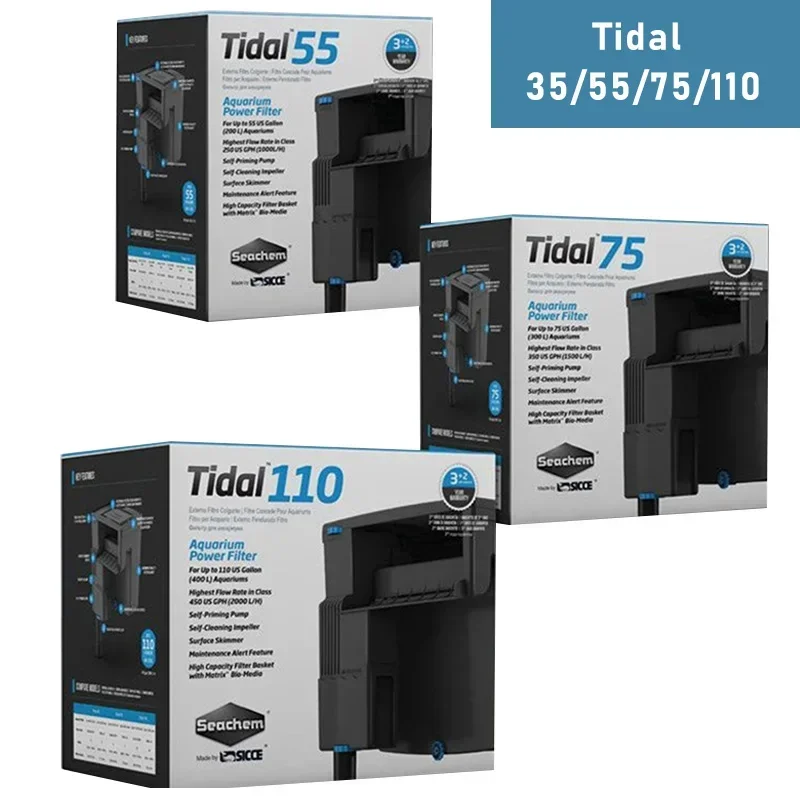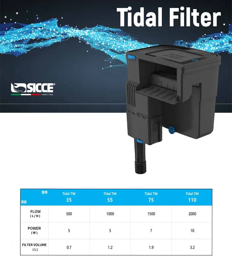 SICCE TIDAL35/55/75/110 Hang-on Filter for Aquarium Silent Waterfall Filter Pump Fish Tank External Flow Regulated 220V 50hHz