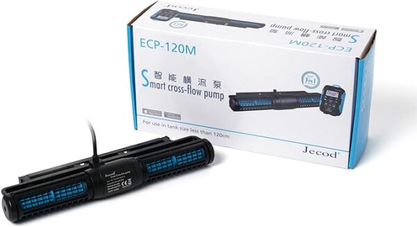 Jebao Jecod ECP-120M Cross-Flow Pump Wave Maker Jebao ECP smart cross-flow wave maker pumps are super small and almost silent. The DC powered pumps can be plugged directly into any wall outlet for plug and play operation, but can also be controlled through Wi-Fi, all you need is a smartphone and the Jebao App. Specifications WIFI ((IOS + Andriod) + manual controller , LCD display controller SINE wave technology, ultra quite, high stable performance Cross wave single impeller structure, water flow no dead end. No exposed cooper element, suitable for both marine and fresh water Dimension: 11.75″” x 2.75″ x 1.4″, 100V-240v 50/60hz DC 24V 45w , 2-prong us plug; Max flow: 13000 LPH Suitable for 100-120cm Tank with Glass Thickness support 15mm Technical Details Manufacturer Jebao Item Weight 3 pounds Package Dimensions 13 x 6 x 4 inches Item Model Number ECP Style ECP-120M Power Source AC Included Components Pump, controller, power adapter Batteries Included No Batteries Required No