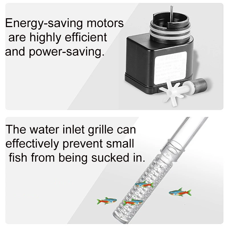 Aquarium Filter Fish Tank Water Pump Silent Purification Circulation External Increase Oxygen Waterfall Compact 220V 3wNote: This product can only be used for 220v-240v voltage, so please do not buy this product in countries that use 110v voltage such as the United States, Canada, and Japan!Product:Aquarium FilterSize:8×7.3×10.3cmVoltage:220V/50HzPower cord length:135cmPower:3WFlow:250L/HVoltage:220V/50Hz1.Equipped with shock-absorbing fasteners, it significantly reduces operational noise, creating a quiet and comfortable viewing environment. Whether you are resting, reading, or sleeping peacefully, you won't be disturbed, allowing you to quietly enjoy the fun of watching fish.2.Built-in bio-filtration sponge, featuring strong physical and biological filtration capabilities, effectively adsorbs impurities in water, decomposes harmful substances, stabilizes water quality, and creates a healthy and clean living environment for fish, reducing the frequency of water changes.3.It features a flow control valve that allows flexible adjustment of water flow based on the size of the aquarium, the number of fish, and personal needs, meeting the different water flow requirements of various fish species and adapting to multiple breeding scenarios.4.High-quality pump motors provide stable power, ensuring efficient water circulation, simulating natural water flow, creating a more natural living environment for fish, and promoting their vitality and health.5.Transparent design allows easy observation of the internal filter cotton usage and equipment operation status; compact structure, simple installation, suitable for various types of aquariums, does not occupy too much space, adding convenience to your aquarium setup.