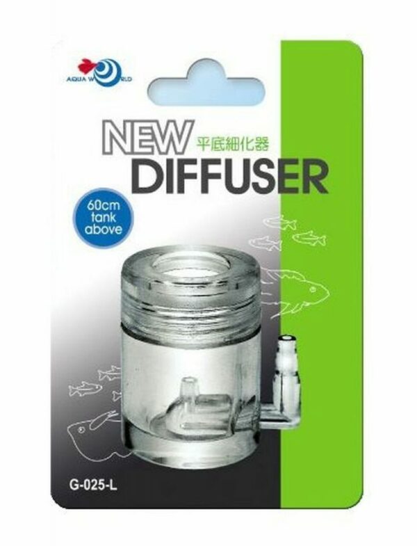 UP New CO2 Diffuser G-025-L The UP-Aqua New Diffuser is a small and unobtrusive CO2 diffuser with great performance. Excellent CO2 dissolution rates, easy maintenance and durable materials make this diffuser a perfect choice for all planted tanks. Designed to be used like a regular glass CO2 diffuser, but with the added addition of seeing the amount of bubbles injected into the aquarium. Small, easy to clean and hardwearing – this is the perfect diffuser for pressurised CO2 injection. Can be used in both low pressure and high pressure systems. For tanks 60cm and above. Note May produce large bubbles during the first few hours, will go back to normal (diffuses fine bubbles) after a while Instruction of use 1)Attach diffuser to your pressurized CO2 system 2)Bubbles will start to appear after few minutes 3)May produce large bubbles during initial use, will back to normal after few hours